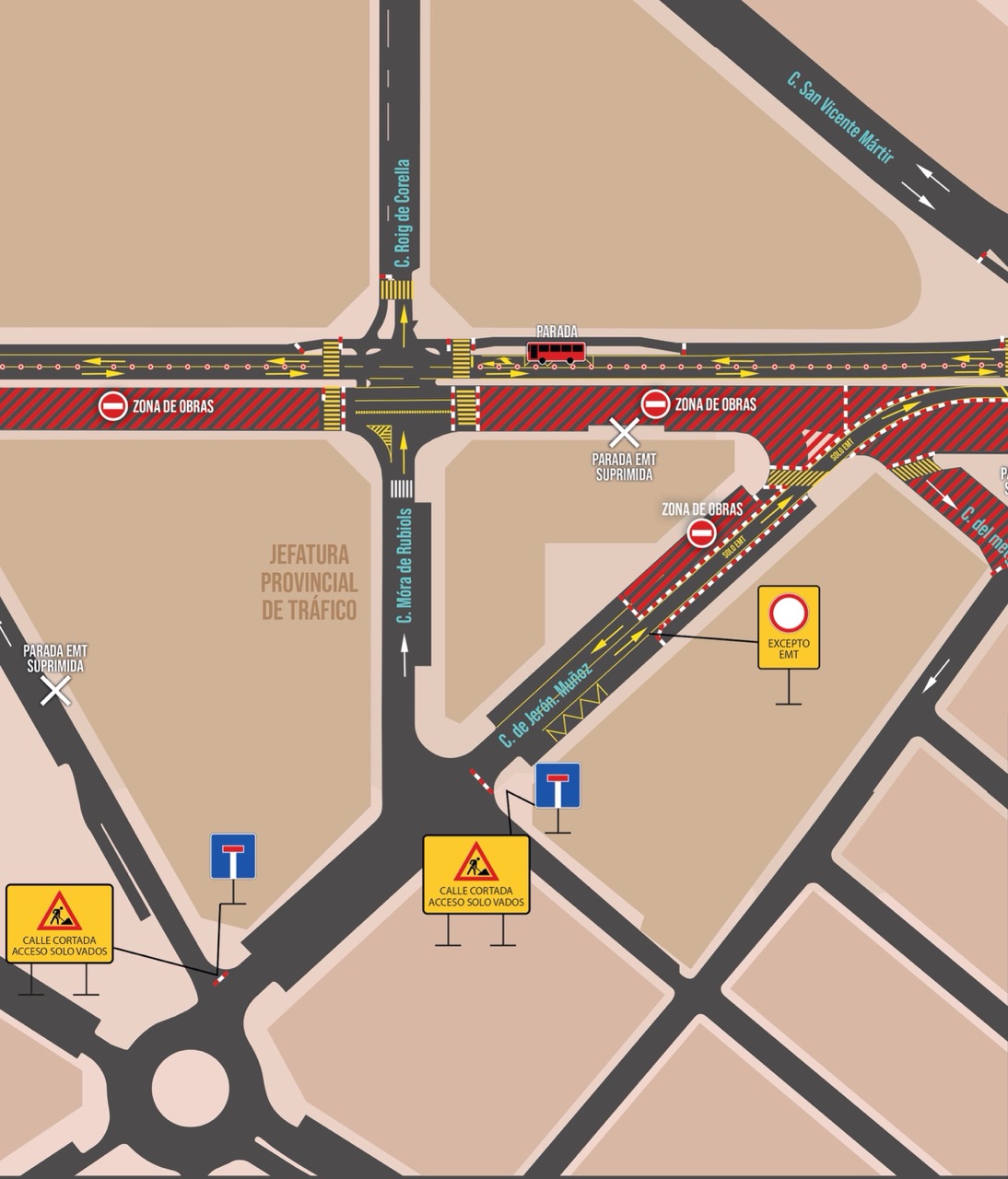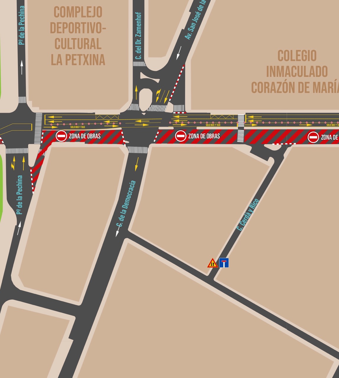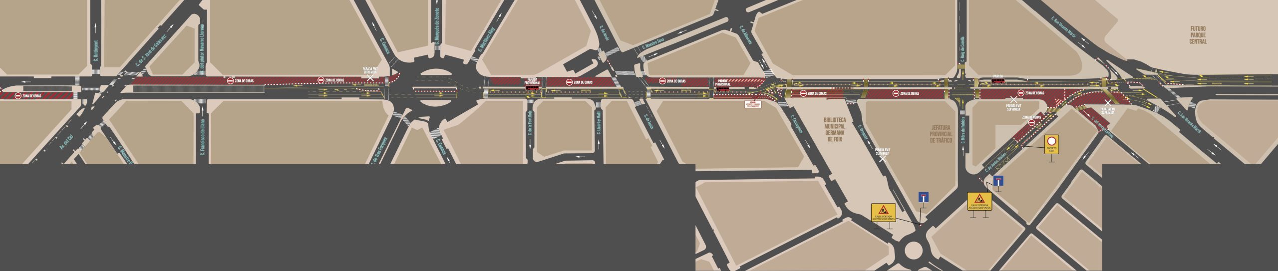 Desvíos de tráfico y señalización de las obras