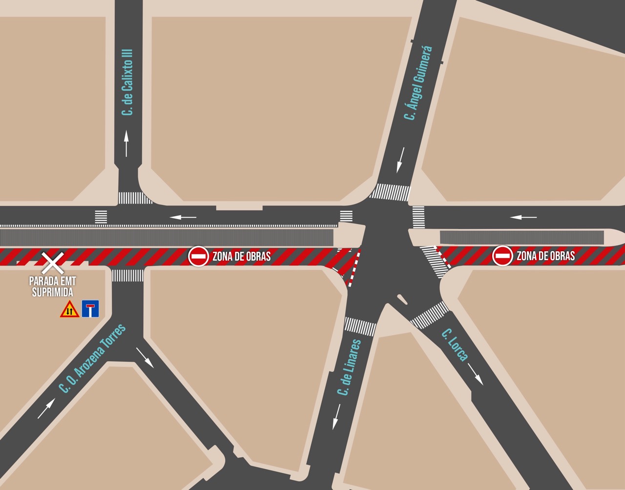 - Tramo comprendido entre C/ Cartagena y C/ Linares.